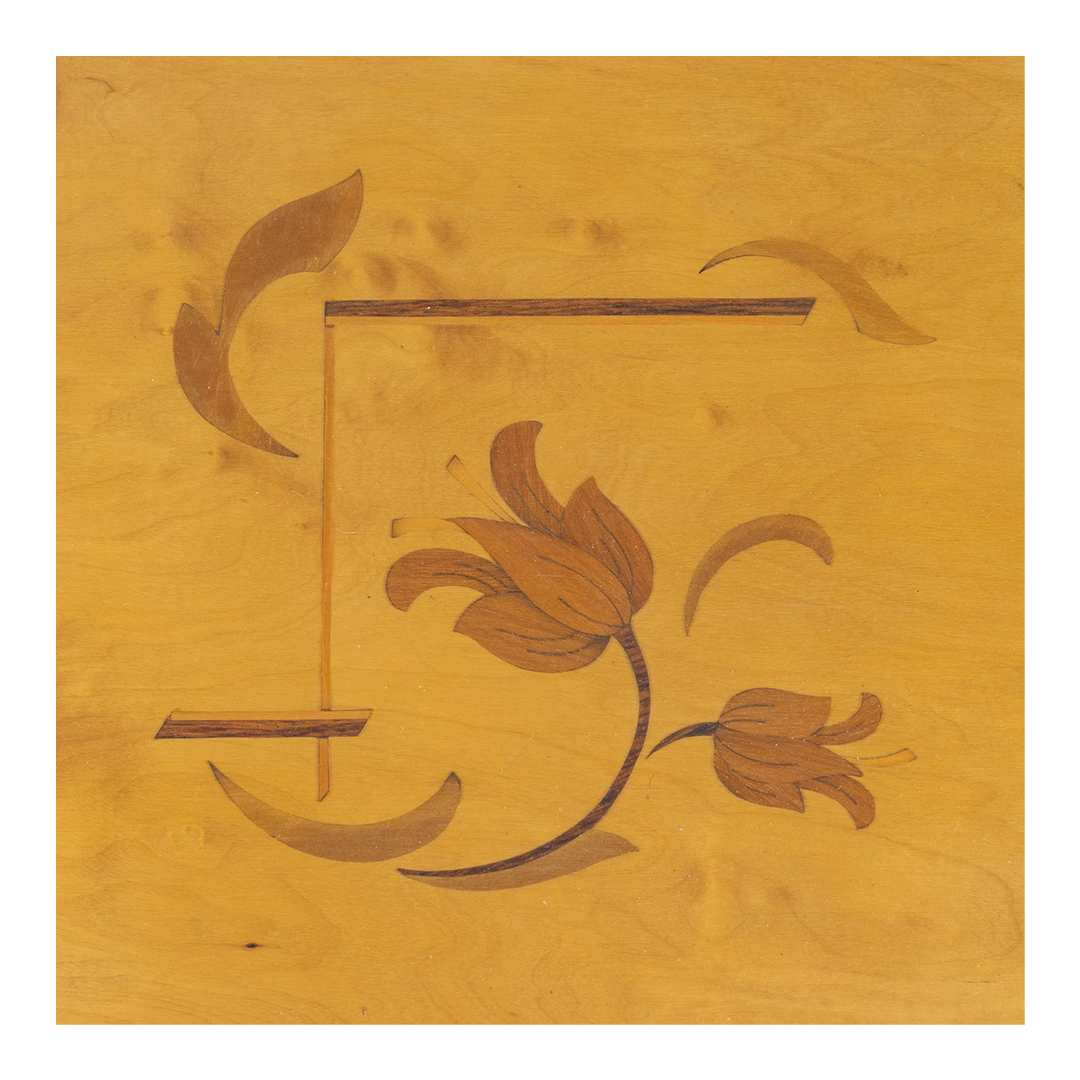 In 1930s Sweden, smoking tables became a very popular part of parlour modernism — furniture intended for social ritual and modest luxury. This late Art Deco example uses light-hued birch rootwood with a contrasting burl walnut veneer over the relatively square cabinet construction. It has two cabinets with an original key, two open corner shelves and a two small top drawers opened with a round metal pull. The top in a bright birch with central floral intarsia. Perfect as a side table....