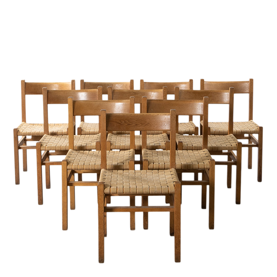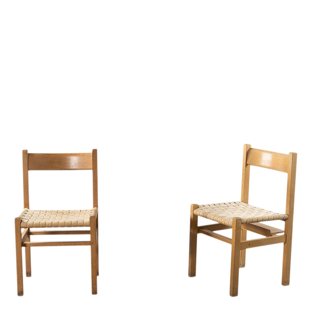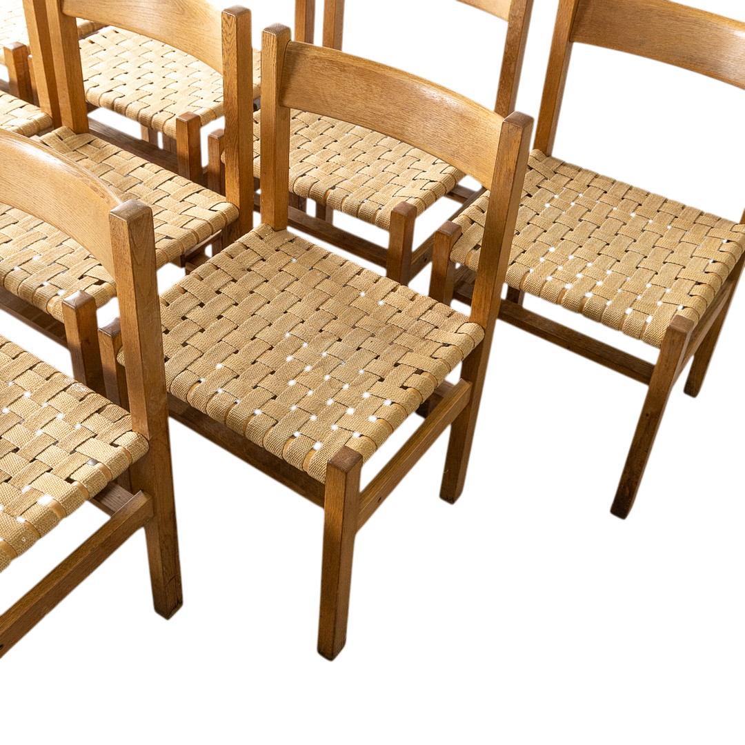oakwood & woven linen dining chairs, Sweden, quantity available