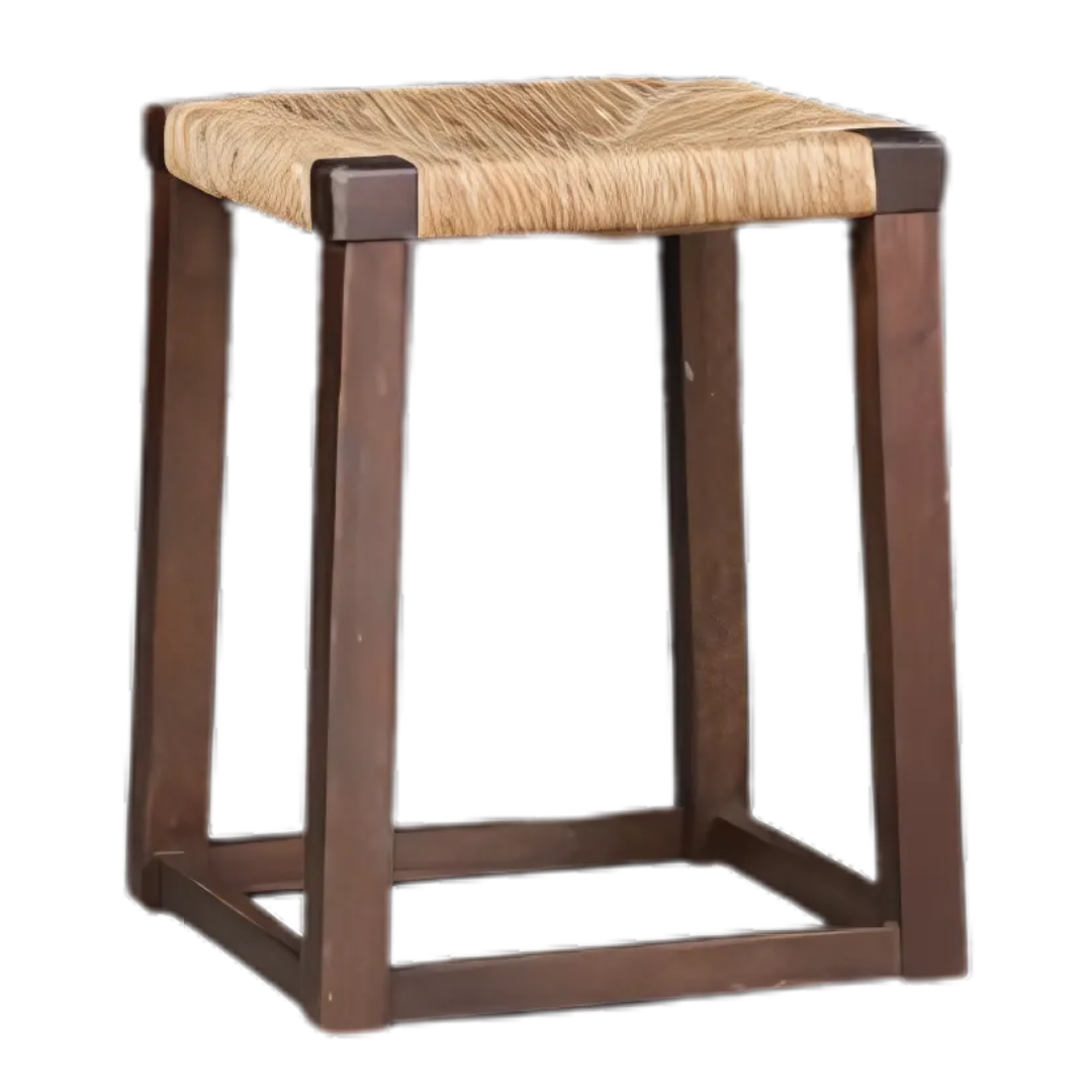 square-form provincial oakwood stool w/rush seating