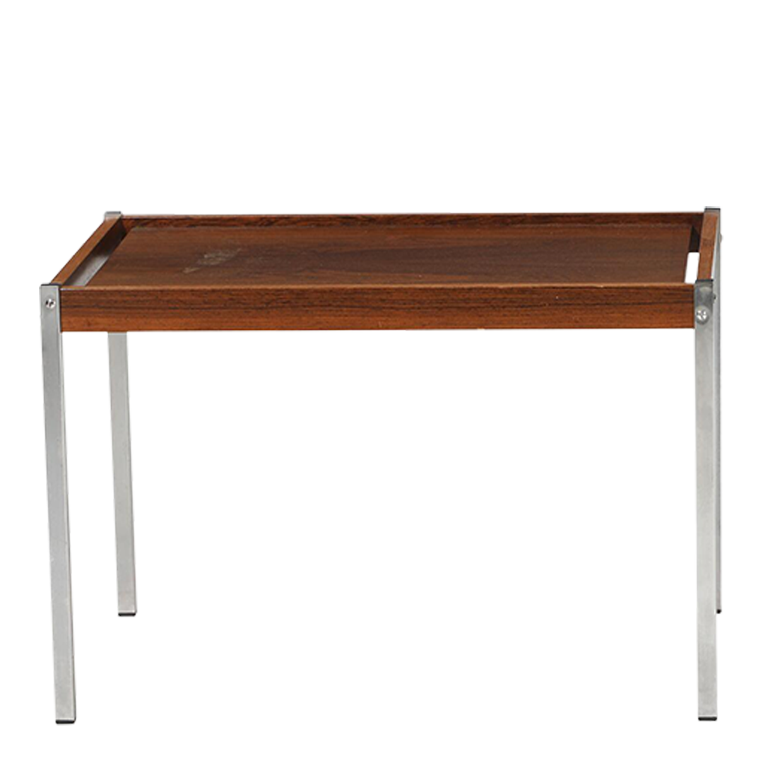 These tables sit within the second generation of Danish Modern, when designers began pairing luxury hardwoods with industrial materials such as chrome-plated steel - more streamlined and more cosmopolitan. Restrained rectangle box tops in a beautiful rosewood fastened to the square chromed steel legs via visible screws - a popular post-modern addition. Sold as a pair