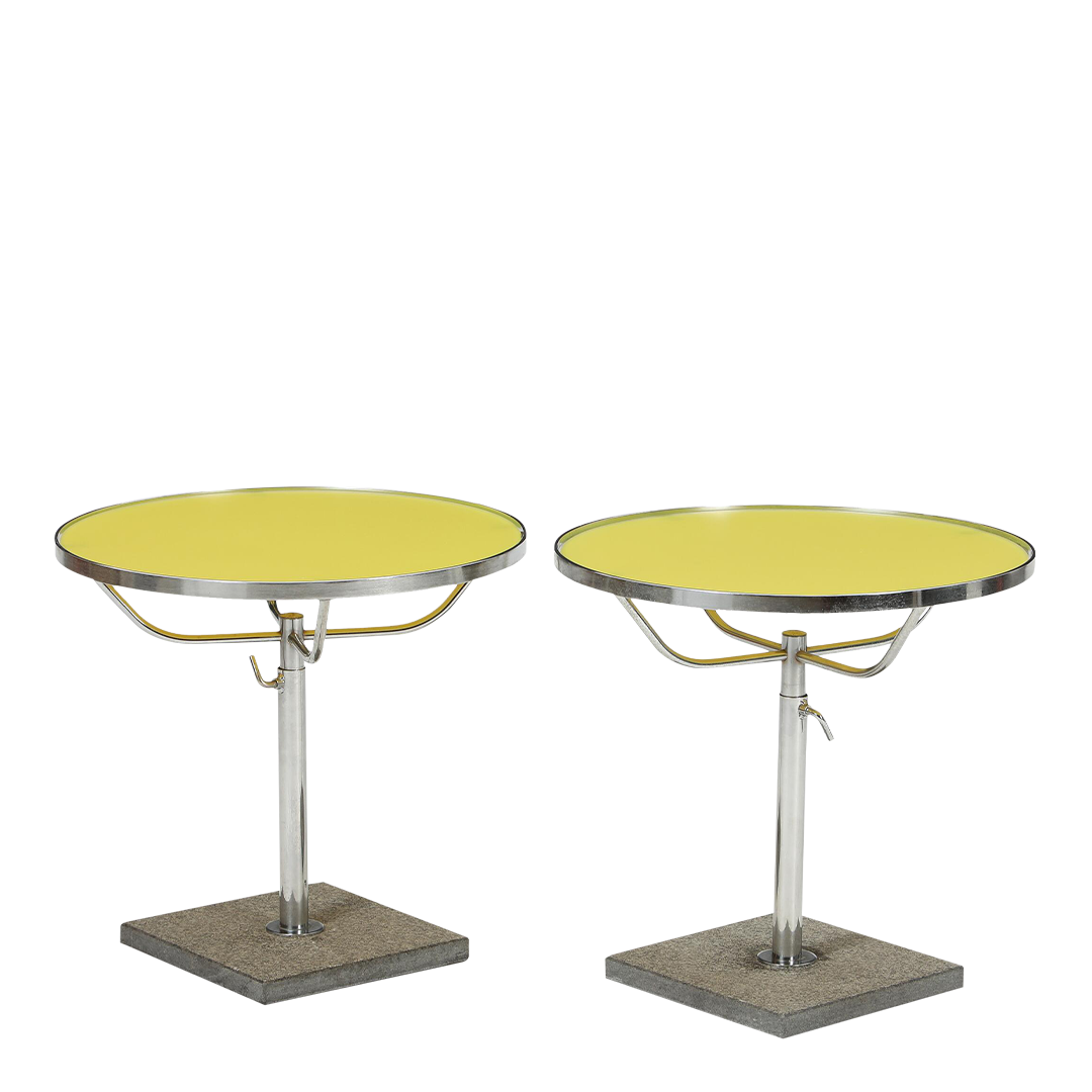 pair 20" chromed side tables w/yellow glass tops
