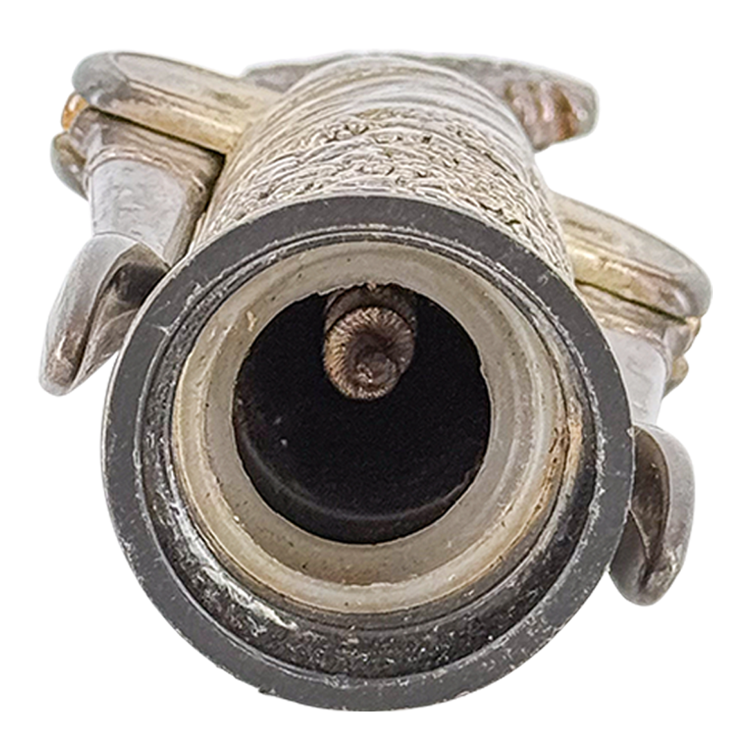 Italian-made figural Bacchus corkscrew for Godinger, c. 1980s–2000s. Cast in heavy silver-plated pewter alloy with elaborate classical drapery and grapevine relief. A rather large fully functional winged corkscrew paired with whimsical sculptural detailing, reflecting Godinger’s late-20th-century tradition of decorative Italian barware.