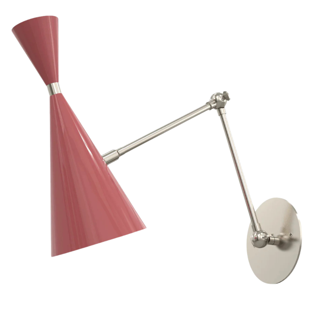 Introducing the Monolith Articulating Wall Lamp, a sleek and sophisticated lighting fixture that effortlessly combines vintage 1950s Italian design with French and Italian mid-century modern influences. Featuring an articulating arm, moveable head, and high gloss enamel finish, this lamp offers both style and functionality. With spun aluminum cones, height-adjustable pivoting arm, and the option for hardwiring or a cord and plug, the Monolith Articulating Wall Lamp is a versatile and timeless addition to any space.