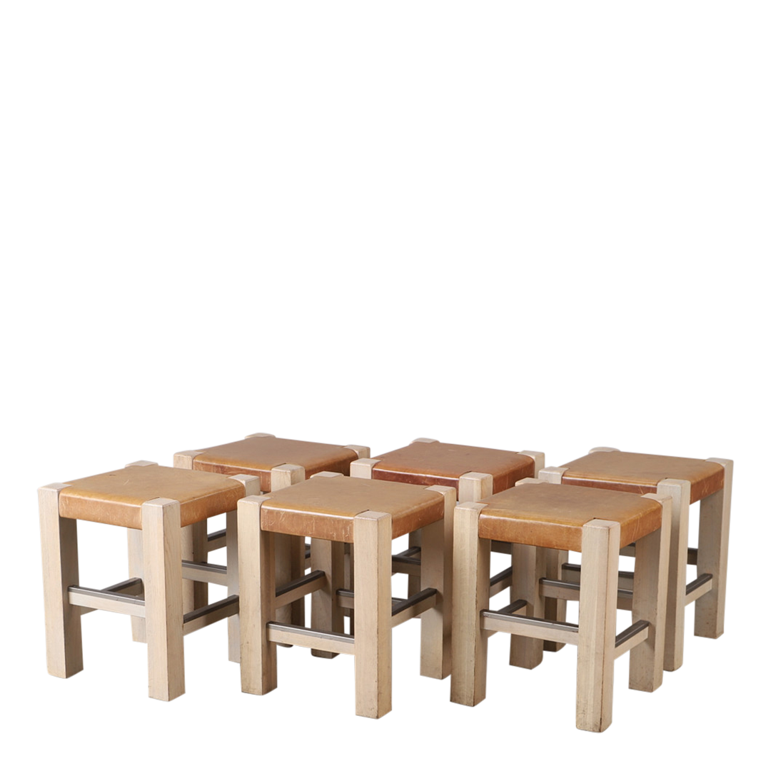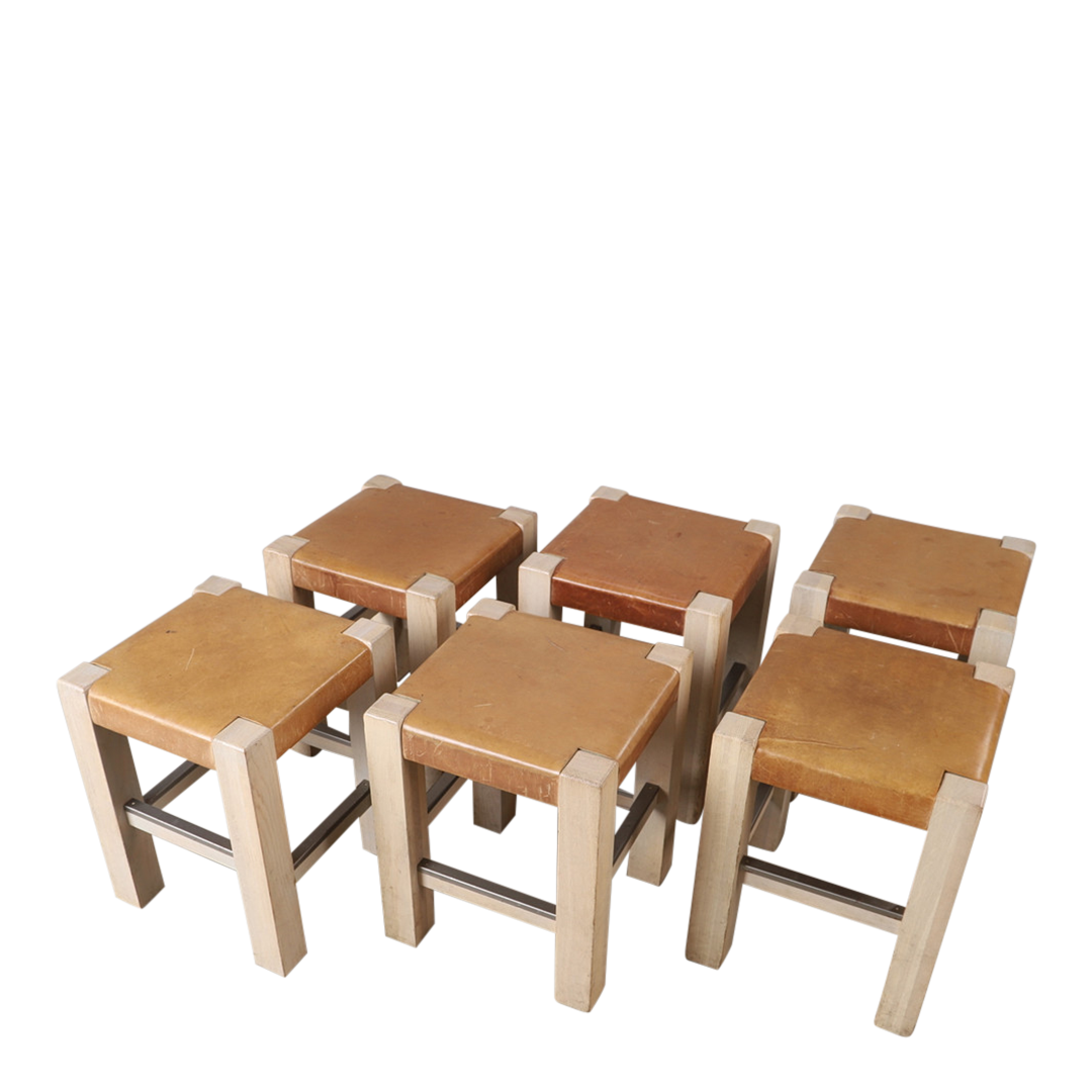 cognac leather over oak framed stool, 8 available