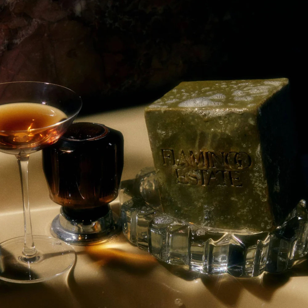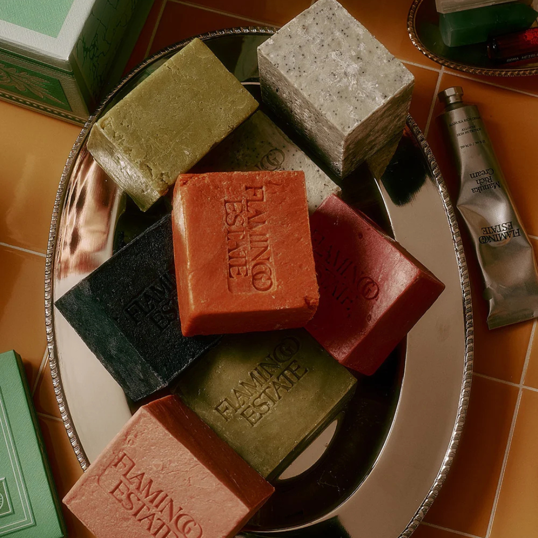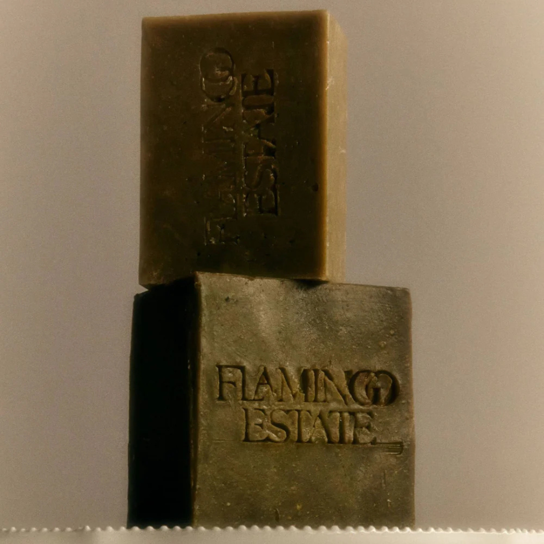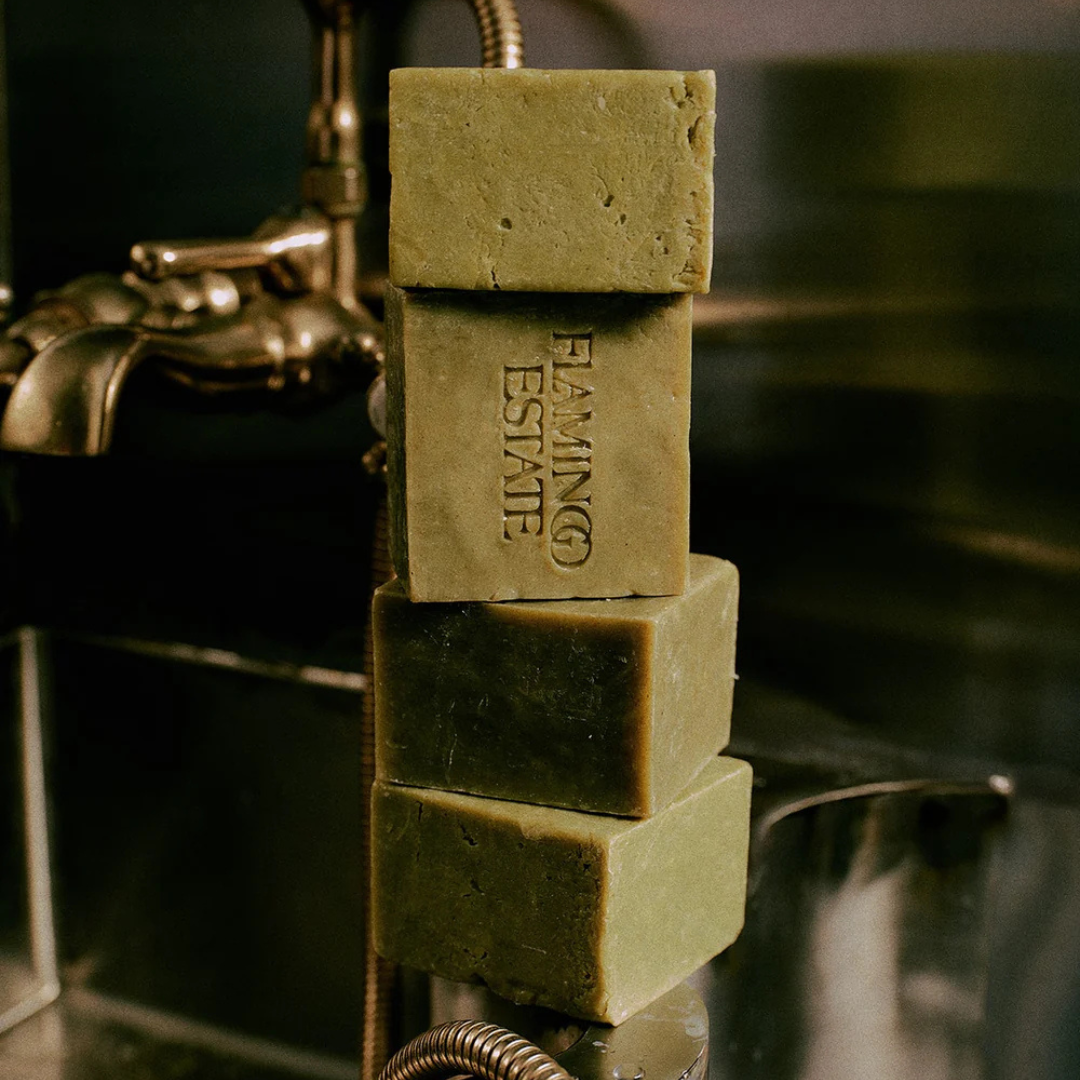 This Soap Brick is a tribute to the green, living heart of Flamingo Estate — Roman Parsley and fresh-cut Rosemary, picked at their most fragrant and alive. It’s the smell of the herb beds in late spring, when the sun warms the soil and your hands come back inside smelling like lunch and medicine all at once.