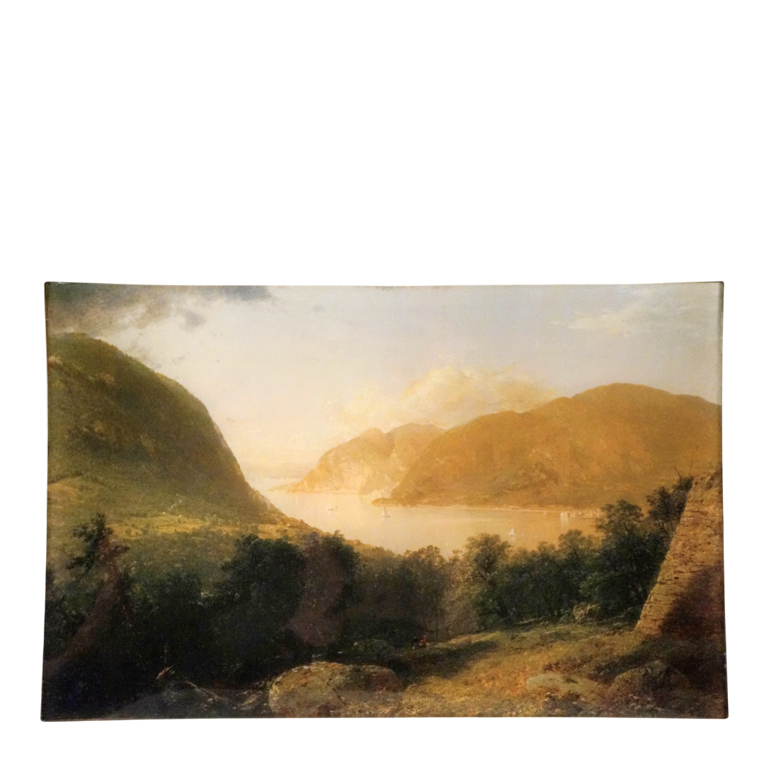Art: Painted in 1857, 'Hudson River Scene' exemplifies John Frederick Kensett’s luminous, contemplative style, capturing a tranquil stretch of the Hudson River—likely near West Point or the Catskills—bathed in soft afternoon light.