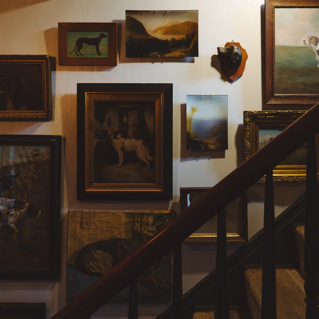 John Derian decoupage: is collaged paper under handblown glass in his studio in New York City, where he employs a small staff of artisans to assist with production.